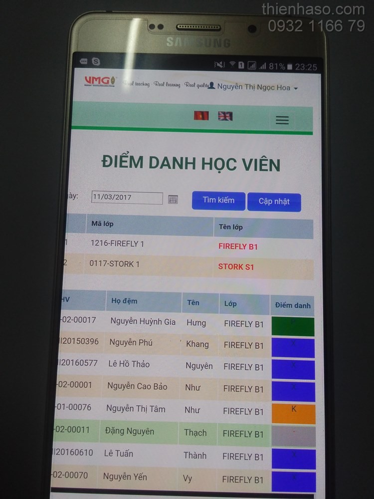 - Giáo viên tra cứu lịch dạy hàng ngày, điểm danh học viên trong các buổi dạy của mình.