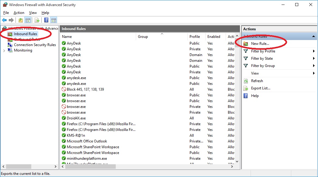 B2: Inbound Rules-> New Rule-> Port