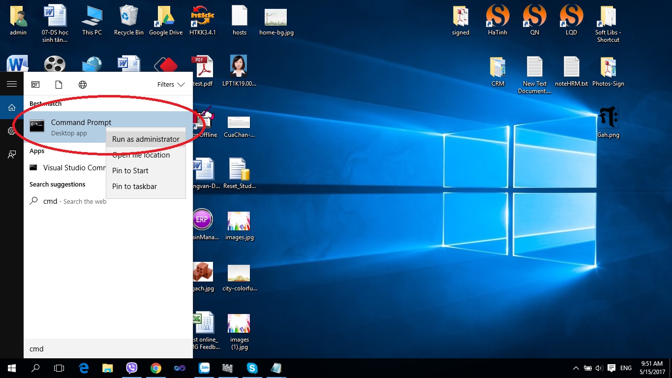 Mở CMD quyền Admin và gõ